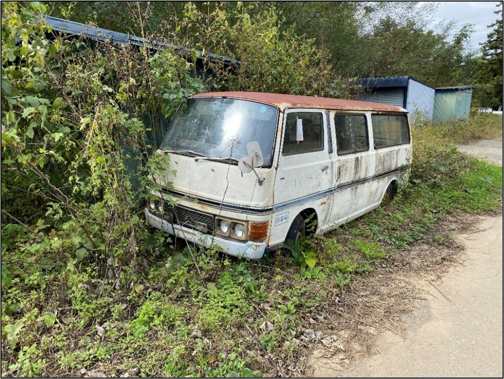 別荘族や移住者が増えつつも、地元の方の高齢化と人口減が続く中、廃屋や手入れがされなくなった田んぼや畑も目立つ。移住者が増えていることは肌で感じるがそれでも高根町全体の人口は減り続けている。と言うことは、つまり地元民人口がかなりのペースで減っているのである。2025年10月時点の高根町の人口は9,109人、世帯数は4,433世帯。5年前の2021年はそれぞれ9,281人、4,248世帯だった。世帯数が増えているのは別荘族や二拠点居住者が大いに関係している。この人口減の高根町で今まで荒れ地だった場所にモダンな新築の家何件もが建っていくの見かけるのはその証左だろう。また、地元民の子息が敷地内に家を建て独立し世帯が増える、高齢者が施設に入って別居状態になって世帯数が増えるケースもあると聞く。一方では、地元の昔ながらの家が独居化、流出・死亡により空き家化、更に廃墟化していく。そして使い古した車がそのまま残ると言うケースもあるだろう。廃車にかかる費用は数万円、それすらも負担になる人達もいるのか。