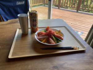 ●14:00 昼食を準備し食べる前に待ちに待ったビールで喉を潤す。至福の時間。その後1時間くらい昼寝