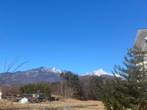 いろんな事を頭に巡らせながら真冬の作業が二か月ほど続く。その一日は朝5:30起床。先ずは温かいもの(カフェオレが多い)をすすりながら身体を徐々に目覚めさせていく。朝食は抜かずたっぷりと摂る。歳と共に身体が固くなっているので、食後は十分なストレッチと腕立て伏せで更に覚醒させる。これが作業事故を防ぐ第一歩だ。現場までの運転は急がず焦らず。今日は途中雄鹿と遭遇しご挨拶も交わした。そして8:10現場作業開始。翌春の芽吹きの頃を思い描きながらコツコツと進めるが、兎に角寒いのでなかなか辛いものがある。本日は作業場のある清里は氷点下7度まで下がった。キーンと空気が澄み、その分八ヶ岳や南アルプスの山並みは青空にくっきりとラインを描き素晴らしいが、10時くらいまでは手足がビリビリする程冷え込む。八つ下ろしが吹き出すと鼻水が垂れっぱなしになる。
