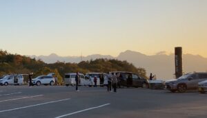 平沢峠に立つとそんな事にも思いが巡りなかなか趣ある時間を過ごすことが出来る。久しぶりにド快晴となったとある日、綺麗な夕陽と星空が拝めるだろうと訪ねてみた。するとびっくり、同じことを考える人が多いんですね。日没の30分前に到着すると駐車場には沢山の人がカメラを持って待機しておりました。老若男女、皆さんマナーが良い、と言うか静かに八ヶ岳の夕陽を待っておられました。私の隣にいた方はわざわざこのために中央高速を駆けてやってきたとか。マニアの方々には有名な峠の様です。